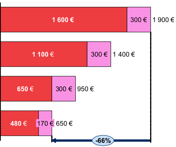 1/ Le chauffage est transformé en plancher chauffant CaleôSol ou mur chauffant alimenté en eau chauffée instantanément par l’électricité, soit environ 30% de réduction sur la consommation du chauffage par rapport à des convecteurs